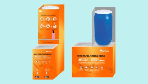 Wastafel ini diinisiasi oleh relawan inspirasi Rumah zakat. Uang dikumpulkan dari para dermawan kemudian dibuat wastafel tanpa keran. Alat pembuka-penutup berulir itu sengaja dihilangkan dengan tujuan untuk mengurangi potensi aktivitas sentuhan dengan sesama pemakai wastafel.