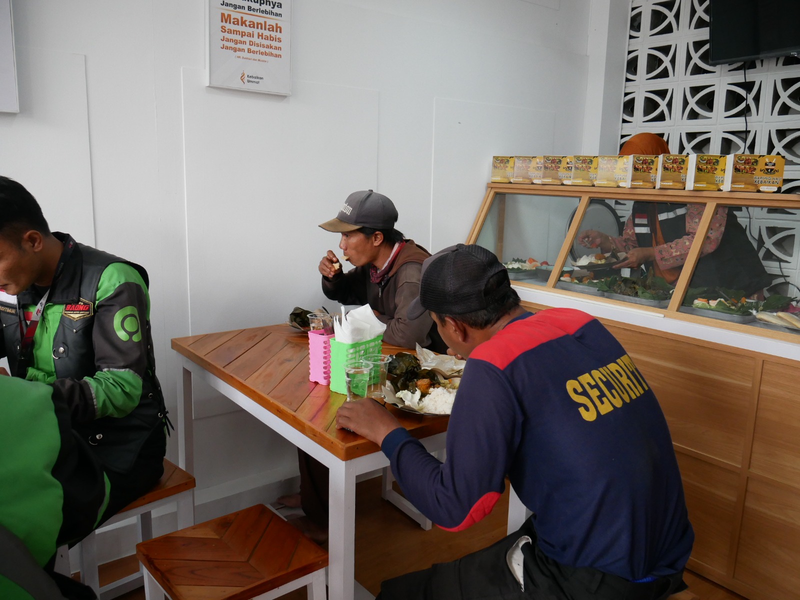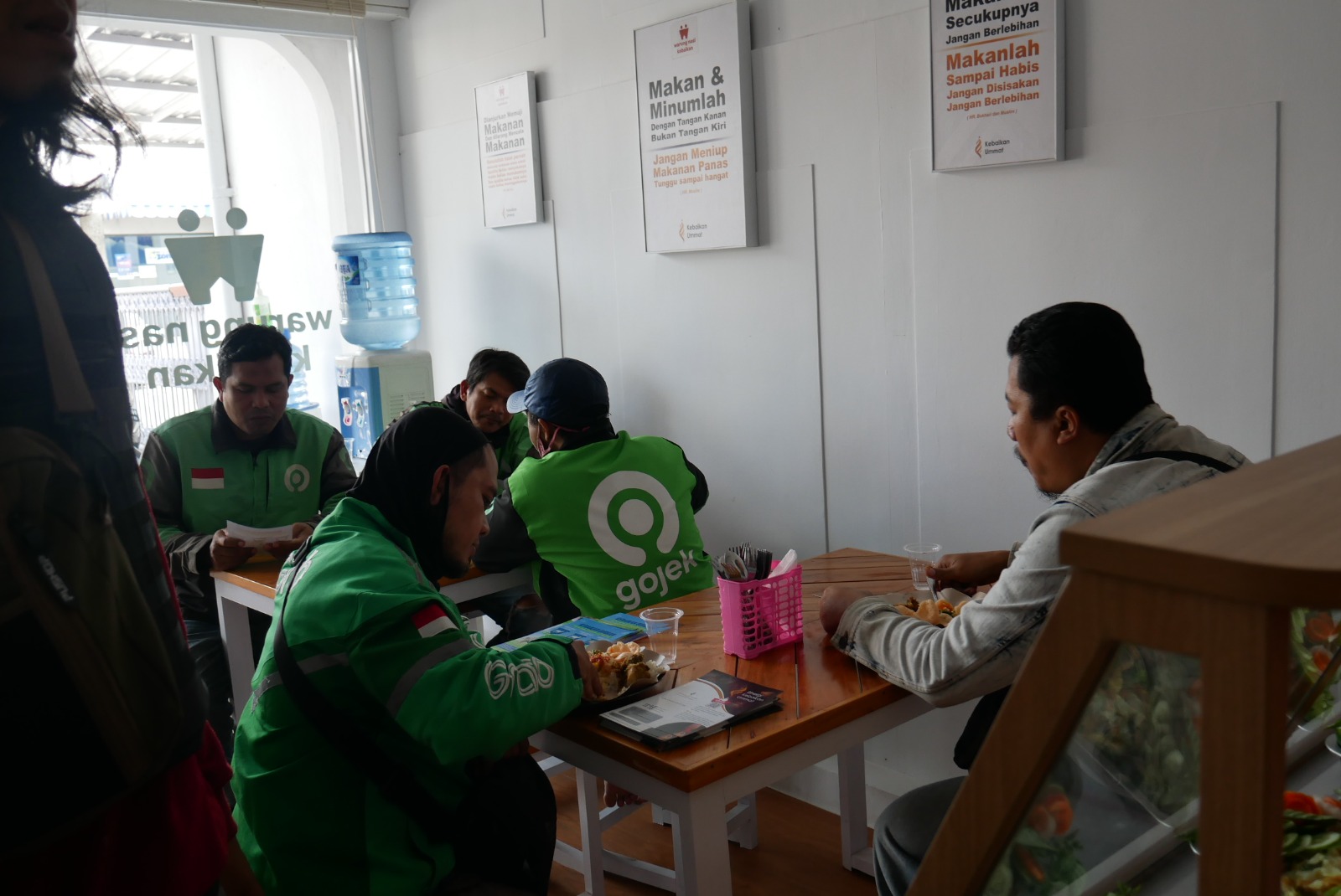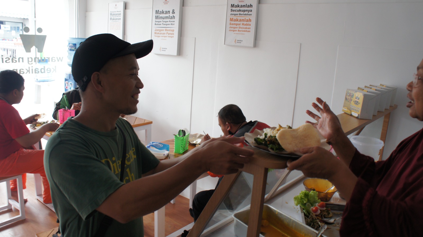 Biasanya, saat Warung nasi Gratis Kebaikan ini masih buka, setiap jam makan siang (Pkl. 12.00 WIB) selalu dipenuhi oleh para pejuang nafkah dan anak-anak serta santri. Tukang Ojek online atau pangkalan, penjual keliling, pedagang asongan, pengamen, petugas kebersihan, security dan ada juga anak-anak sekolah bahkan anak-anak panti asuhan yang jaraknya berdekatan dengan Warung nasi ini selalu datang untuk makan siang secara GRATIS tanpa Syarat.