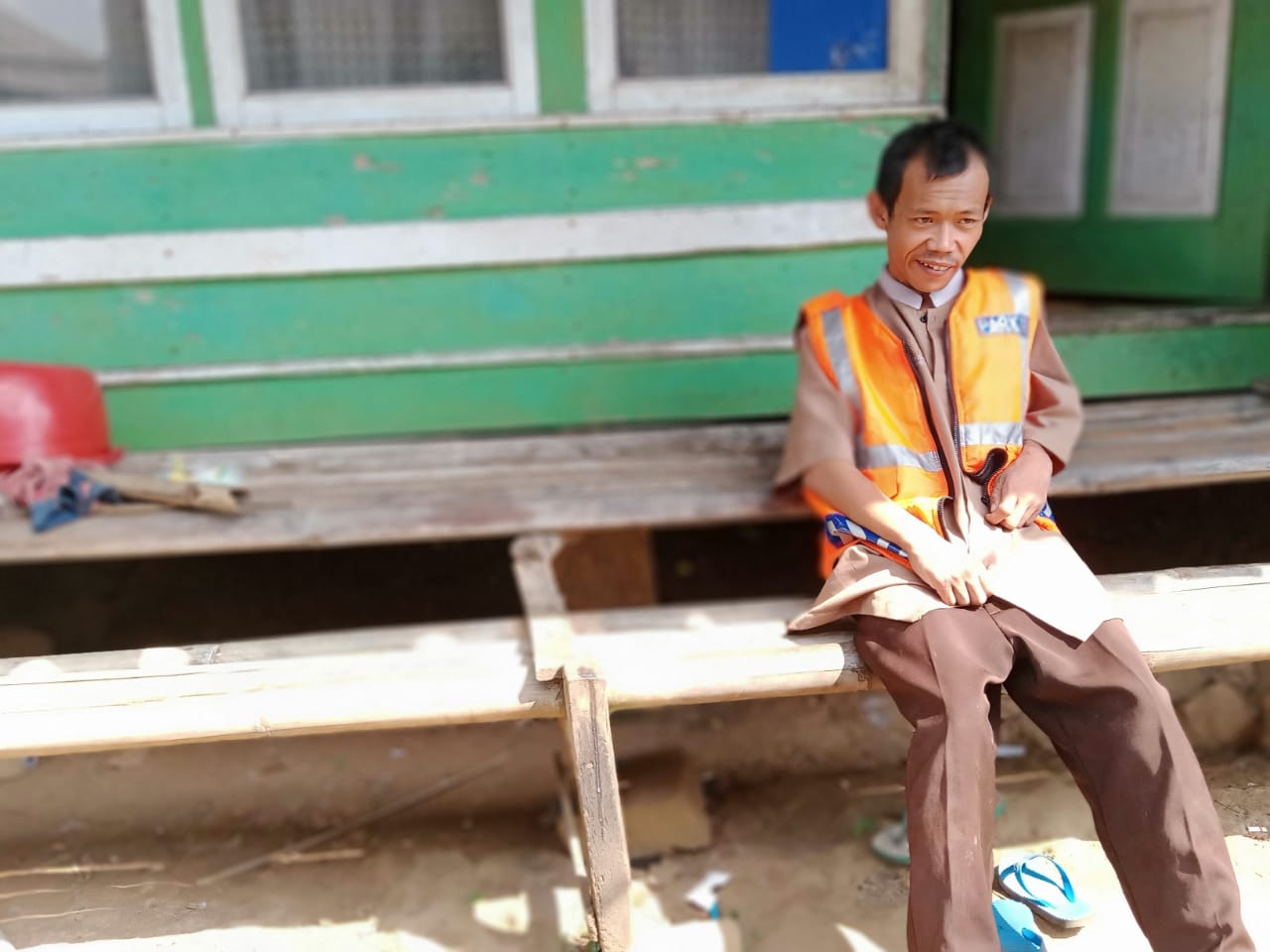 Tulang kakinya yang bergeser ia kaitkan dengan sandal menggunakan karet agar bisa berjalan seperti orang normal. Tangannya yang bengkok ia jadikan pegangan karung untuk membawa botol bekas sambil tertatih-tatih menyeret kakinya sambil menahan rasa sakit untuk mengambil sampah yang terbuang di jalanan maupun tempat sampah.