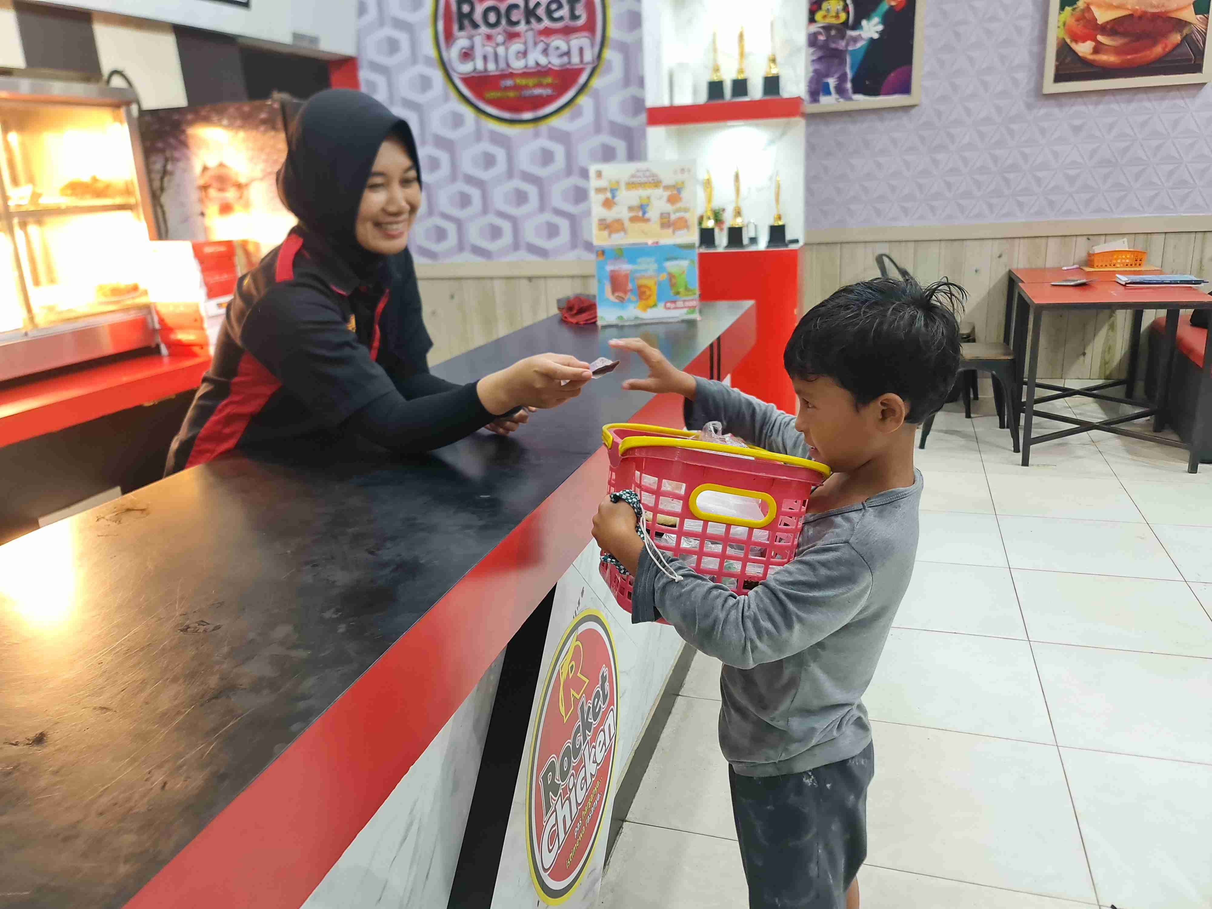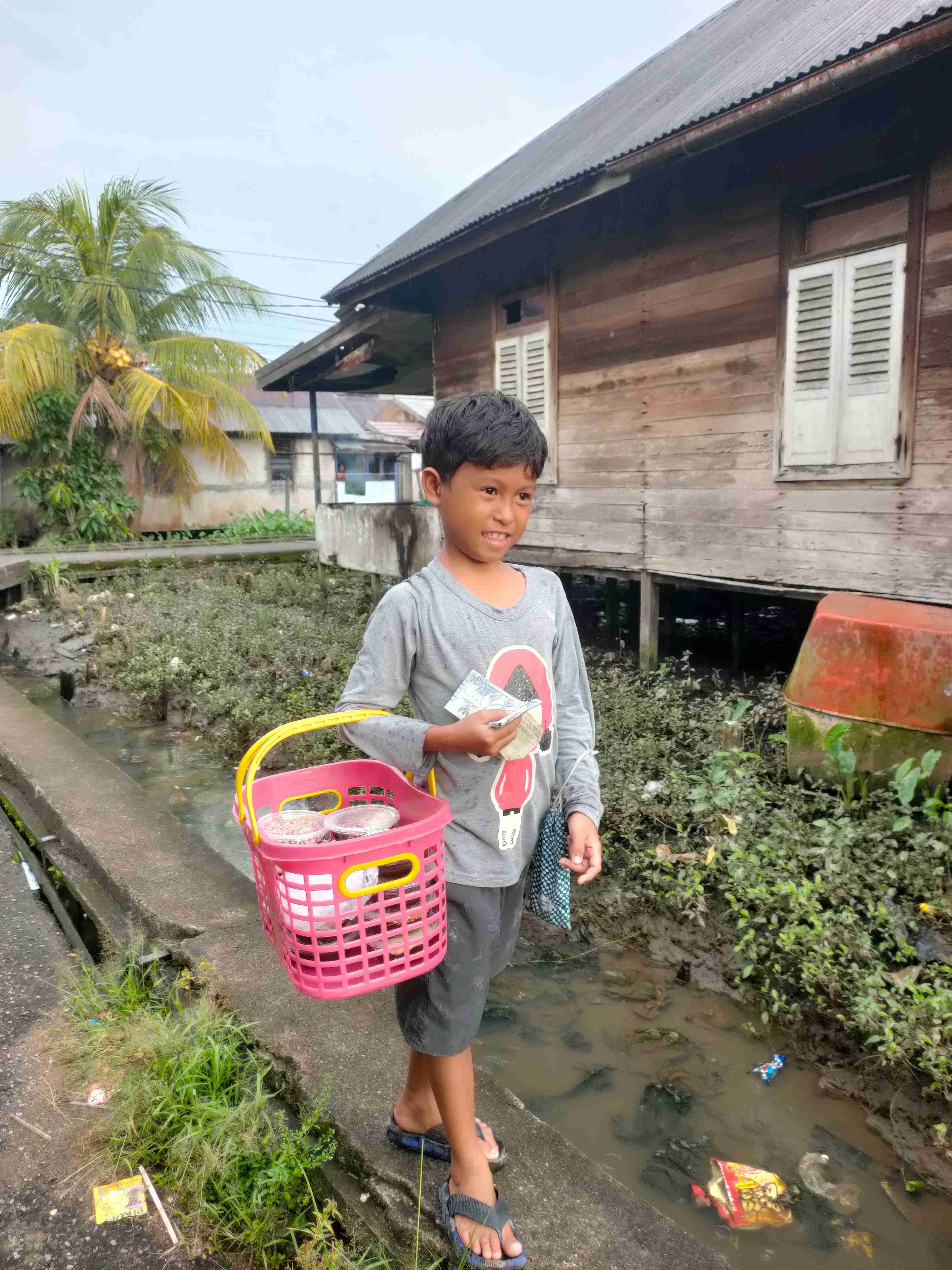 Sepulang sekolah Nafis menyiapkan kue untuk dijual. Upah yang didapat hanya seribu dari satu cup kue yang laku.