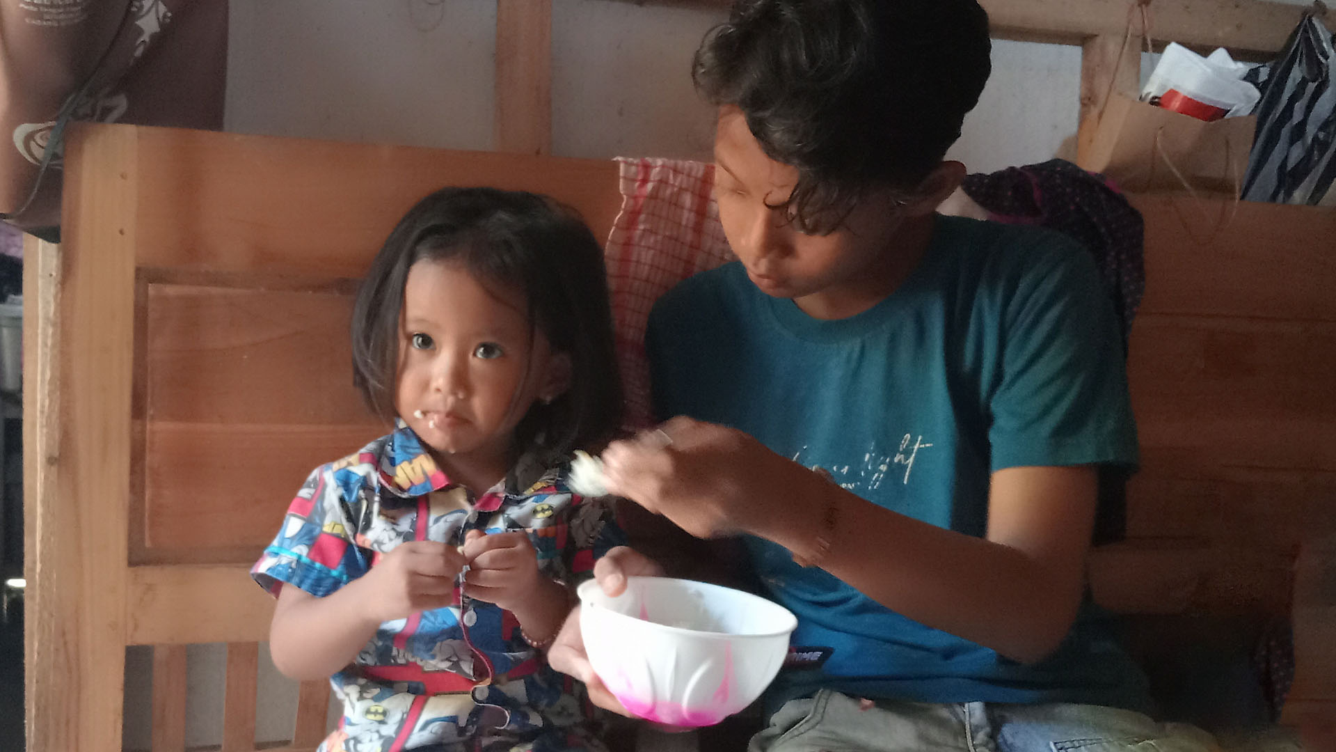 Rifki terpaksa menitipkan adiknya ke tetangga karna harus bekerja.