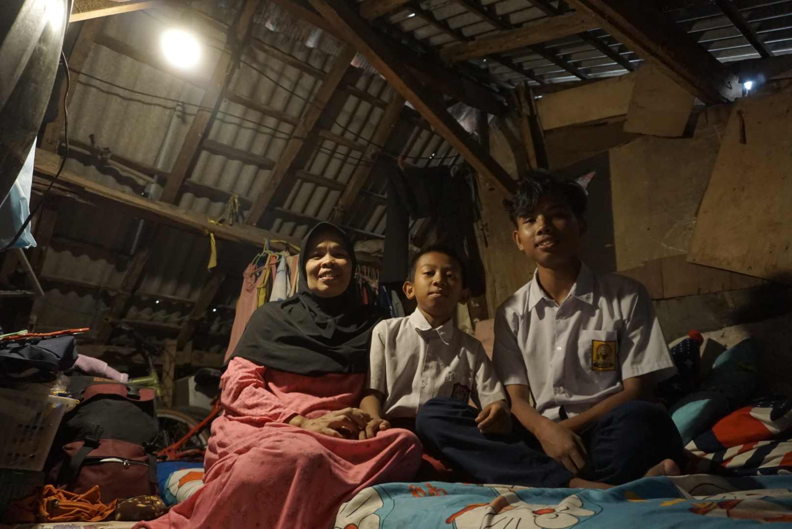 Sang ibu bekerja sebagai buruh sapu dengan penghasilan Rp400 ribu per bulan, hanya cukup untuk kebutuhan harian. Mereka berjalan 2 km ke sekolah setiap hari dengan sepatu jebol dan tas berlubang.